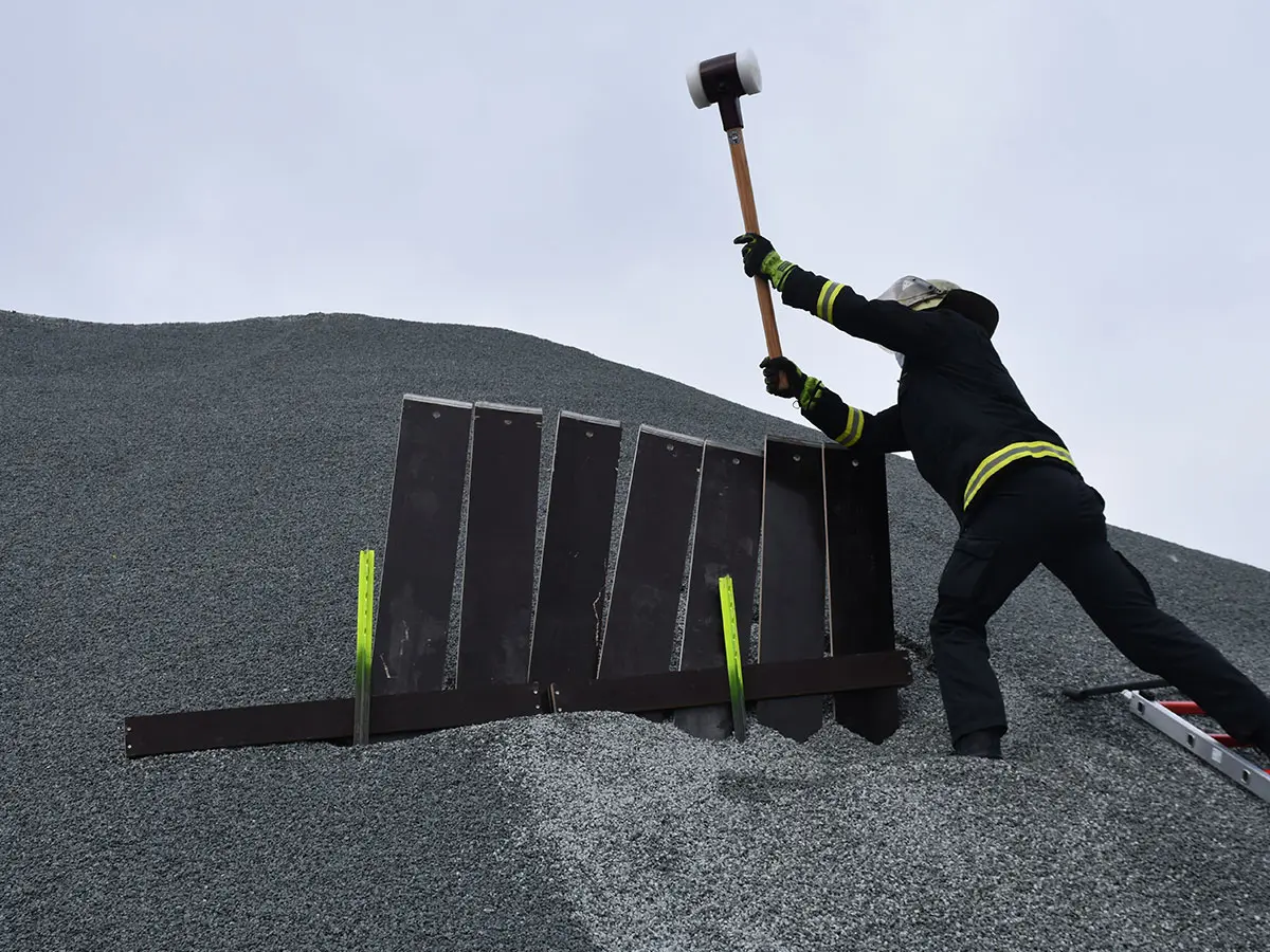 Die rechteckige Form ermöglicht den Einsatz bei liegenden Verschütteten. Mit der abgefasten Kante und den beweglichen „Schlagecken“ kann das HSRS in das Schüttgut eingetrieben werden.